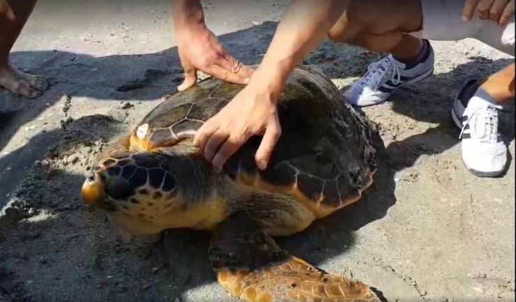 O broască țestoasă din Mediterană a fost găsită pe plaja Vadu! FOTO&VIDEO