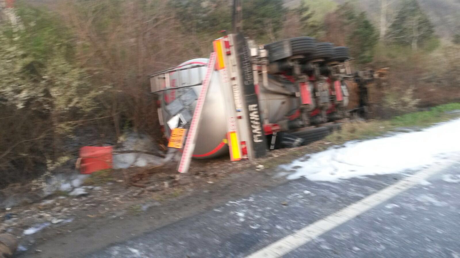 O cisternă cu 40 de tone de acid sulfuric s-a răsturnat pe DN1. PRIMELE IMAGINI