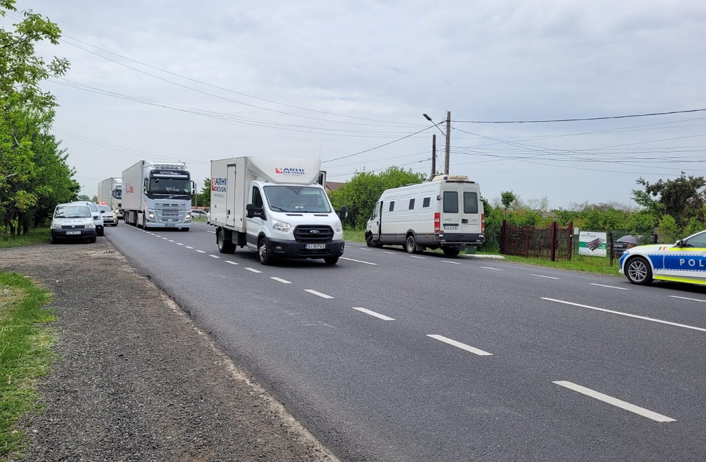 O dubă cu deținuți a intrat pe contrasens și a lovit o mașină de poliție, pe E85, la Poșta Cîlnău, în Buzău