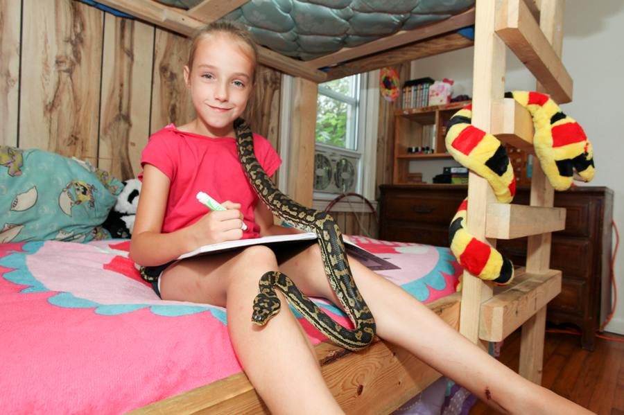 O fetiţă de 9 ani din SUA doarme în pat cu şerpi | FOTO