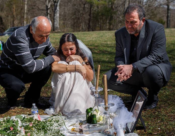O mireasă plânge la mormântul logodnicului său, în ziua nunții lor. A fost ucis cu doar câteva săptămâni înainte de eveniment (FOTO)