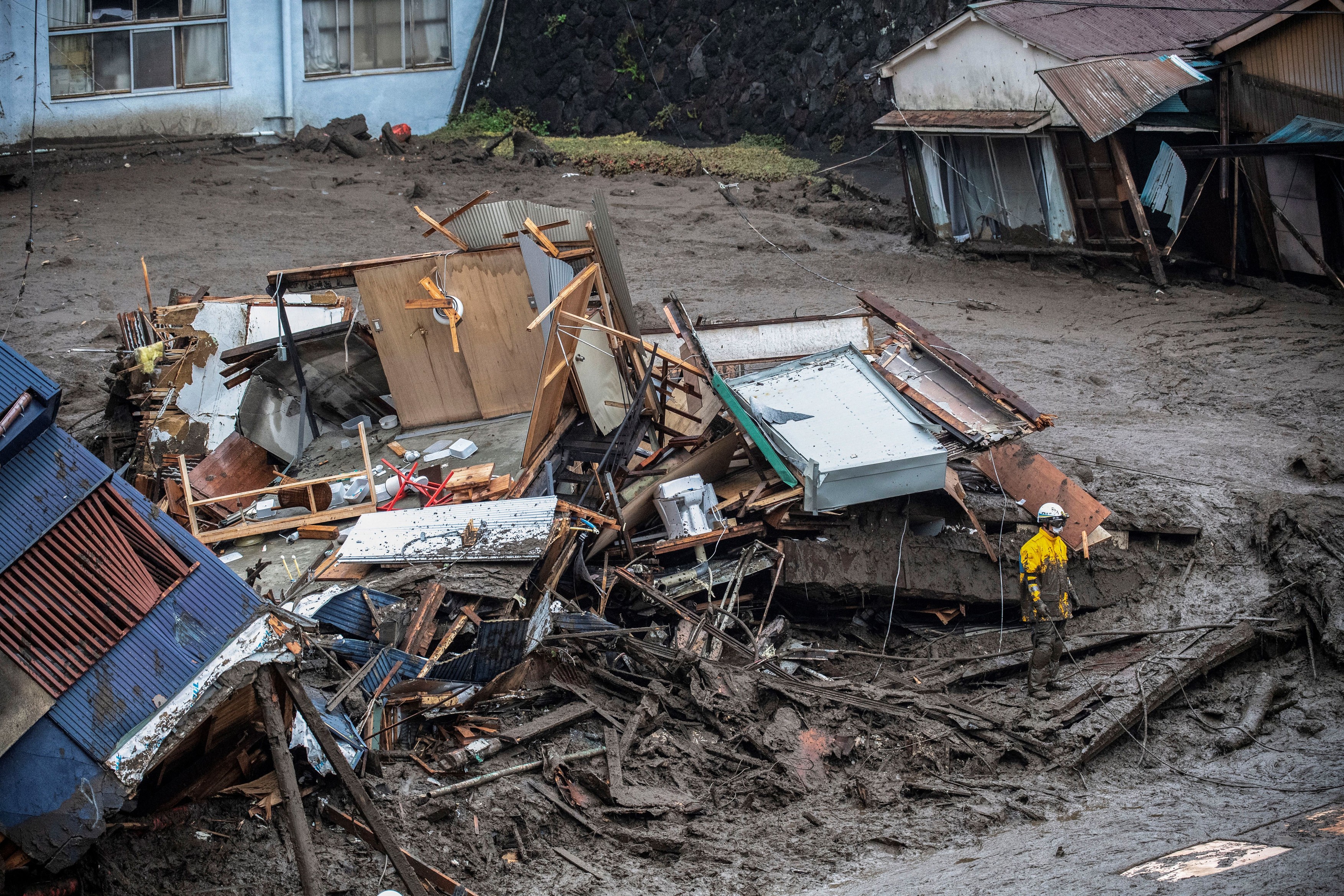 Police search for missing people at the scene of a landslide following days of heavy rain in Atami in Shizuoka Prefecture on July 4, 2021.,Image: 619490383, License: Rights-managed, Restrictions: , Model Release: no, Credit line: Profimedia