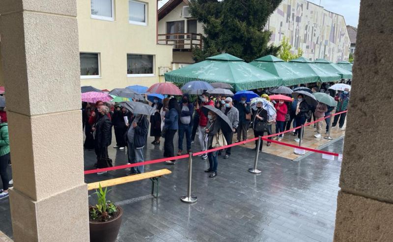 La Blaj, oamenii au stat la coadă în ploaie, după ce s-au epuizat vaccinurile. DSP a trimis doze suplimentare