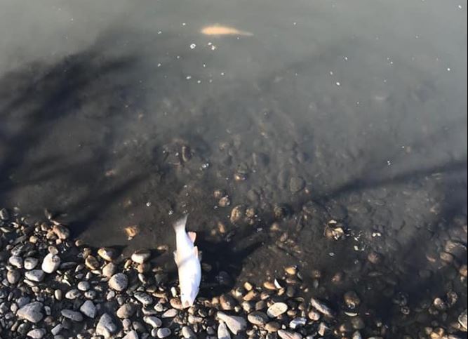 FOTO / Peşti morţi pe râul Timiș, lângă o staţie de epurare. Garda de Mediu a prelevat probe din apă