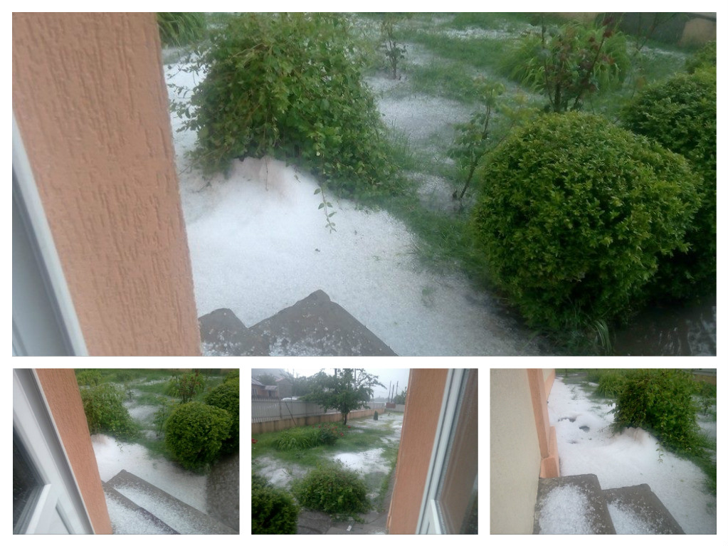 Dealurile din jurul orașului Cluj-Napoca au fost acoperite cu un strat gros de grindină, astfel că în scurt timp locul arăta ca în plină iarnă.