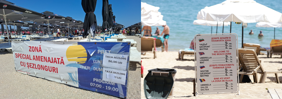 Pret sezlong, saltea, umbrela Romania vs Bulgaria