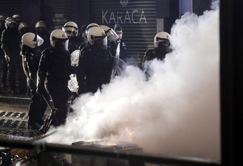 epaselect epa08935324 Protesters riot during a protest in demand for justice in the case of Ibrahim, 23, who died on 09 January, in Brussels, Belgium, 13 January 2021. The Brussels public prosecutor's office on 13 January requested the appointment of an investigating judge to continue the investigation which was opened on 11 January. The 23-year-old man died on 09 January in a hospital where he brought to by police around one hour after his arrest in Brussels North police zone. EPA-EFE/STEPHANIE LECOCQ