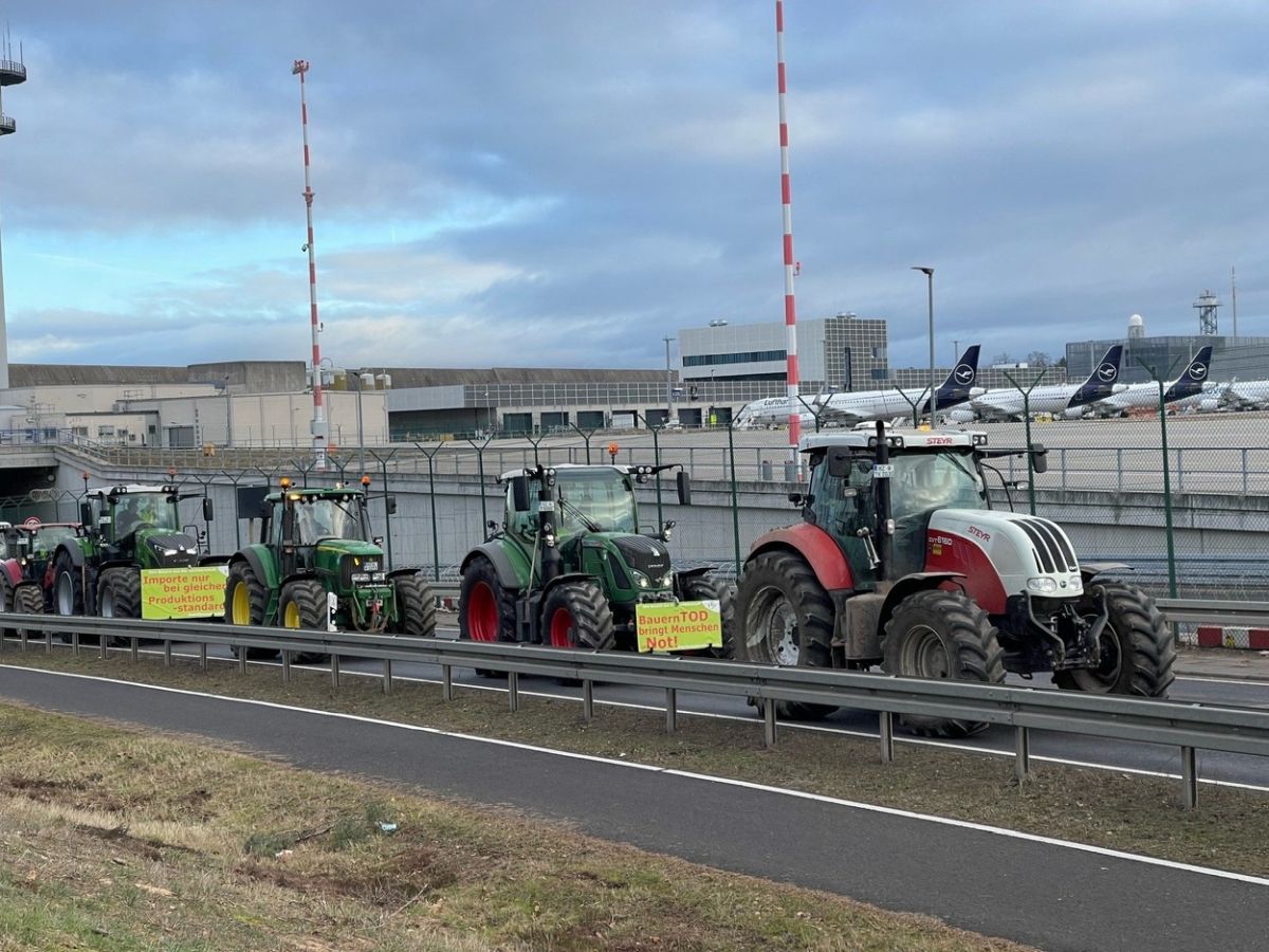 Protest cu tractoare în zona aeroportului din Frankfurt. Fermierii au perturbat accesul pe cel mai mare aeroport al Germaniei