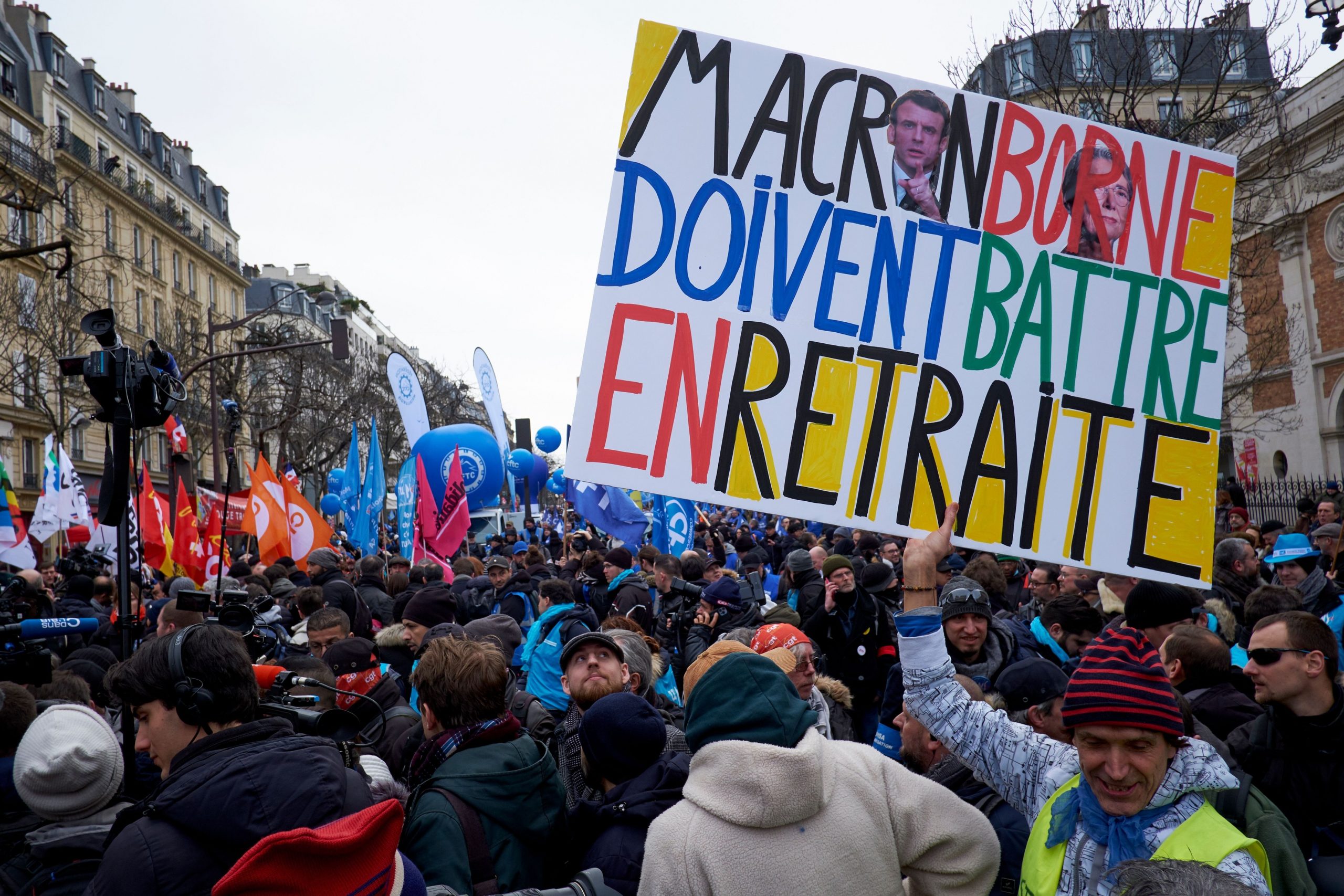 Peste 1,2 milioane de oameni au ieșit în stradă în Franța, ca să protesteze față de reforma pensiilor. „Pentru Macron, e ușor. El stă pe scaun”