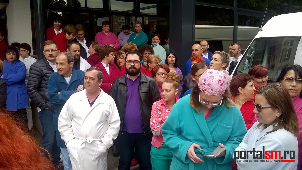 Protest la Spitalul din Satu Mare. Zeci de medici și angajați ai unității medicale, în stradă