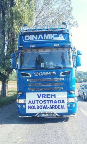 FOTO | Protest pentru construirea unei autostrăzi între Ardeal și Moldova. Lumea a ieșit în stradă cu motociclete și camioane