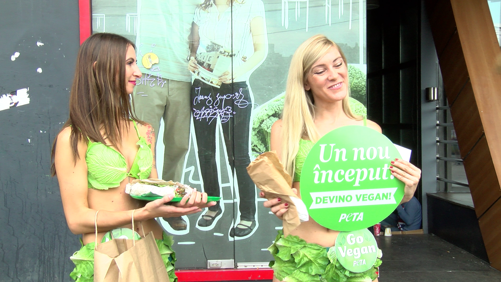 FOTO&VIDEO/ Show în bikini pentru o viață fără carne. Ambasadoarele care militează pentru o alimentație sănătoasă au apărut costumate în frunze de salată
