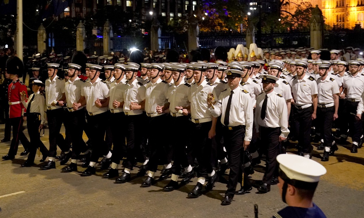Repetiții pentru funeraliile reginei în timpul nopții. Imagini de la pregătirea procesiunii care va avea loc pe 19 septembrie