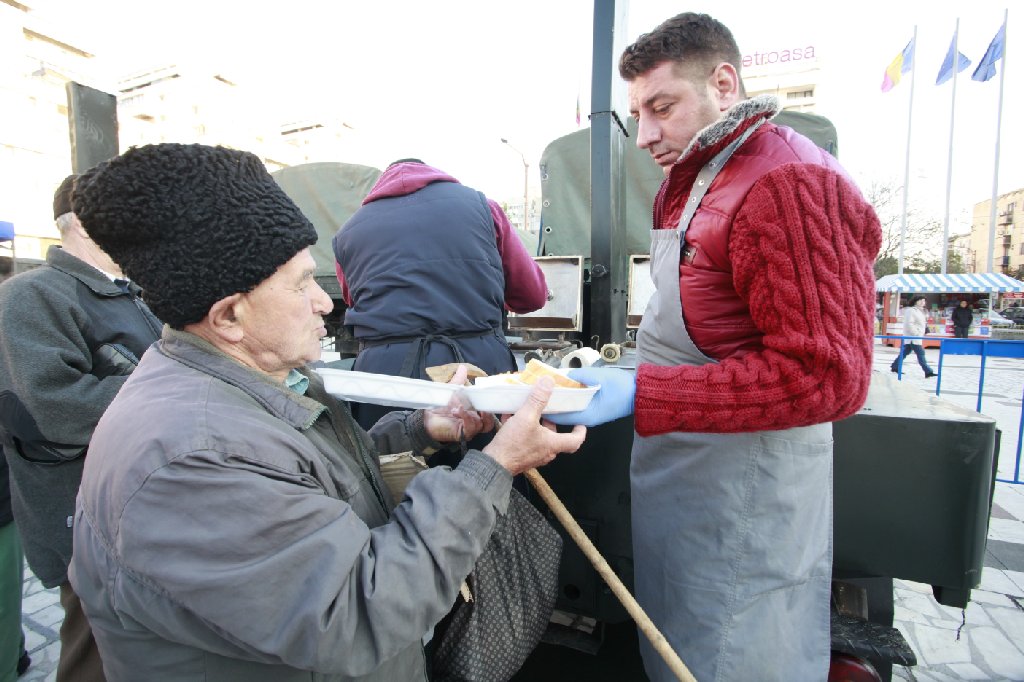 REPORTAJ: Sute de buzoieni au poftit la fasolea cu ciolan gătită în stil cazon de Ziua Armatei. „Bună fasolea, dar cam chioară. Nu prea am găsit ciolanul”- FOTO&VIDEO