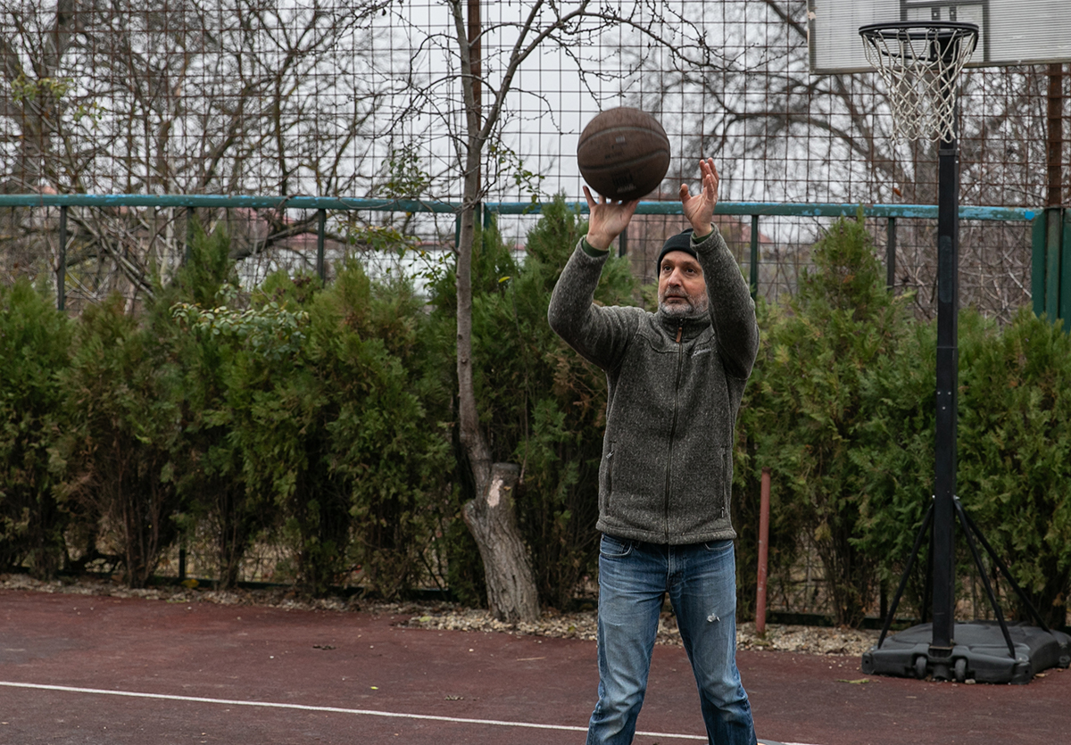 Joacă baschet de unul singur