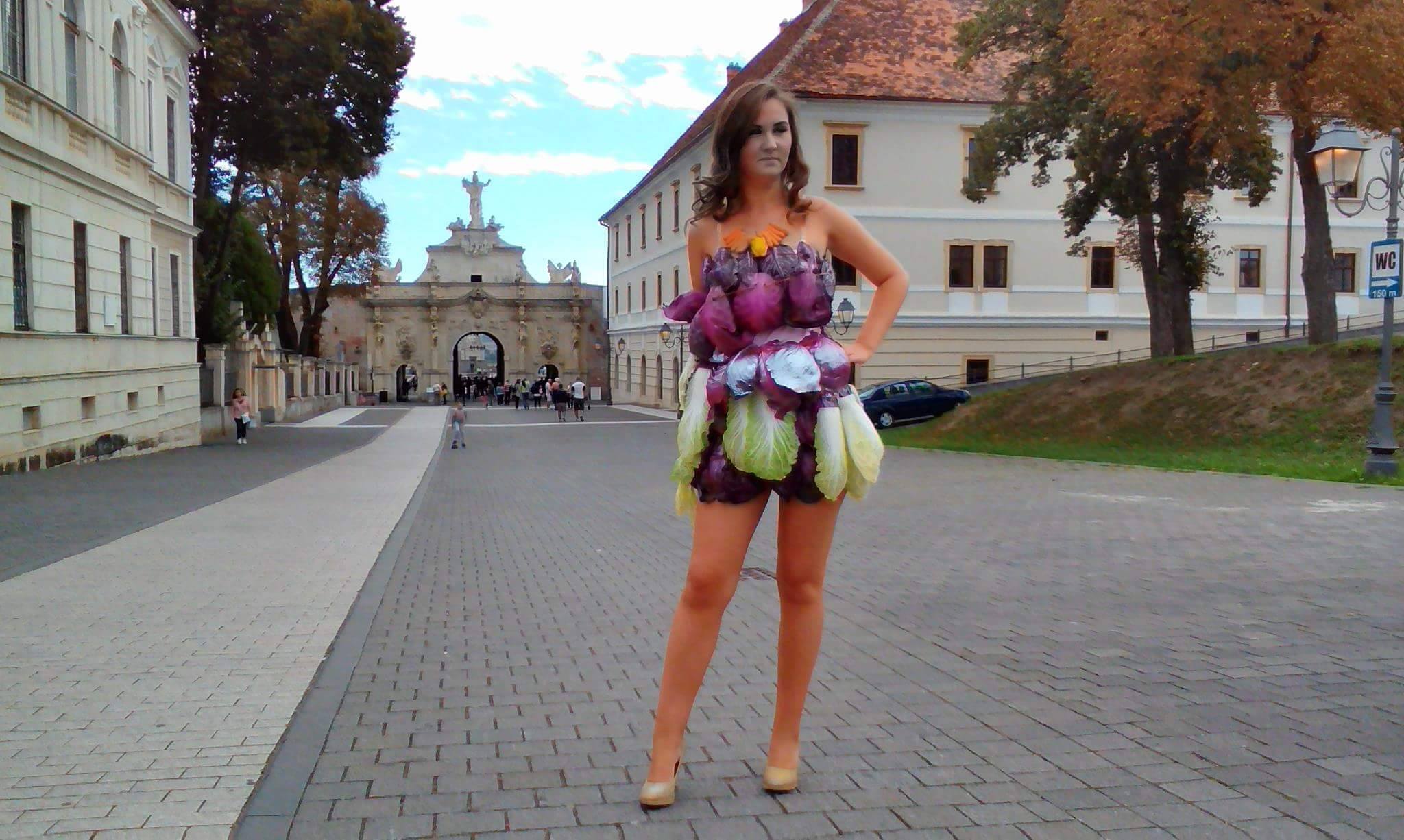 EXCLUSIV REPORTAJ/ Fashion Food la Alba Iulia: Un bucătar excentric face haine și accesorii din alimente. Spectatorii pot mânca direct de pe modele!/ VIDEO