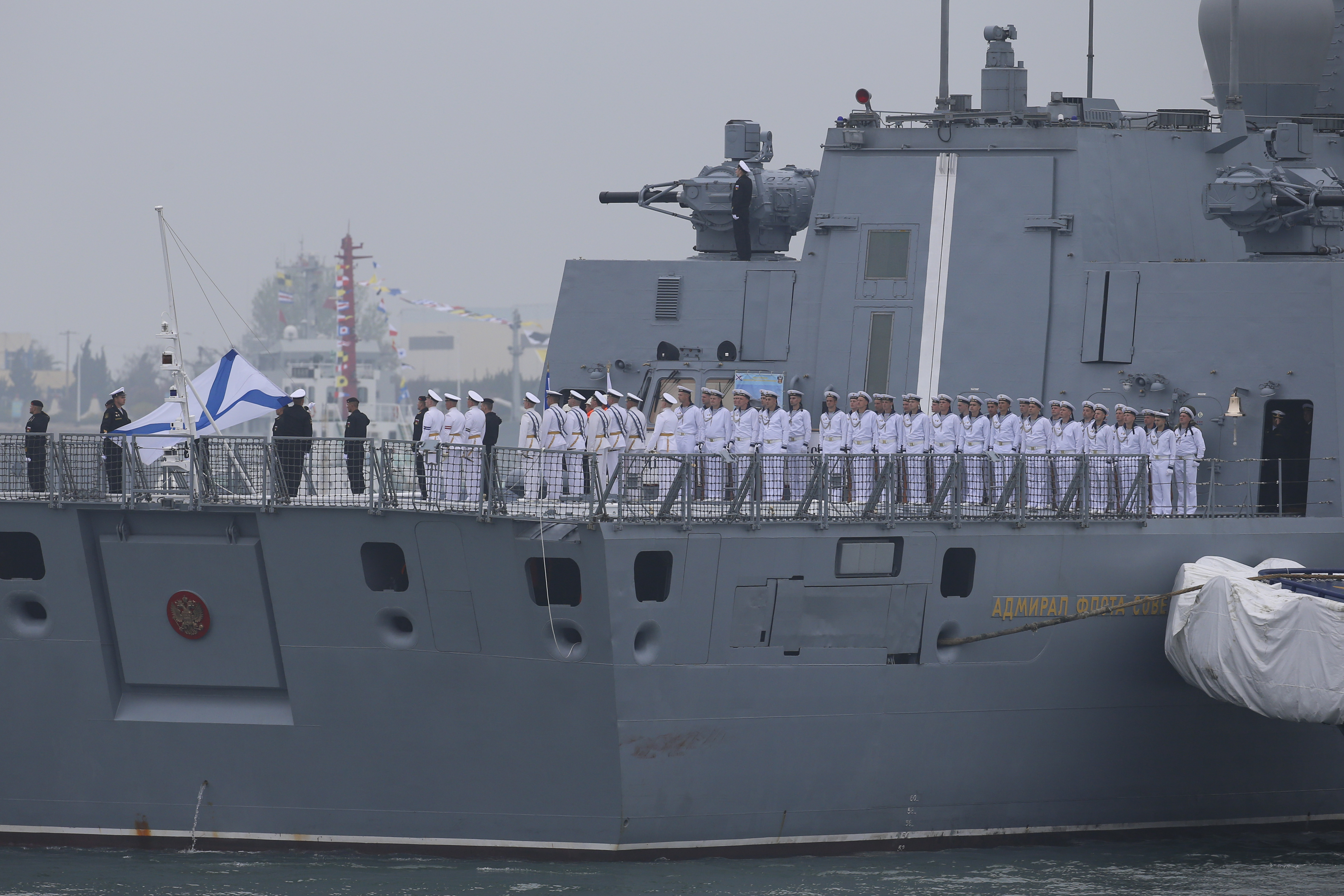 epa07670587 Russian Navy Project 22350 missile frigate Admiral Gorshkov arrives to the port of Havana for an official visit, in Havana, Cuba, 24 June 2019. During the visit, the Russian sailors will complete a program of activities that includes a courtesy visit to the Chief of the Revolutionary Navy (MGR) of the island, Rear Admiral Carlos Duque, and tours of places of historical and cultural interest. The visit of the Russian ships to the Caribbean island takes place at a time when the bilateral relationship between Cuba and Russia shows a new impulse. EPA-EFE/ERNESTO MASTRASCUSA