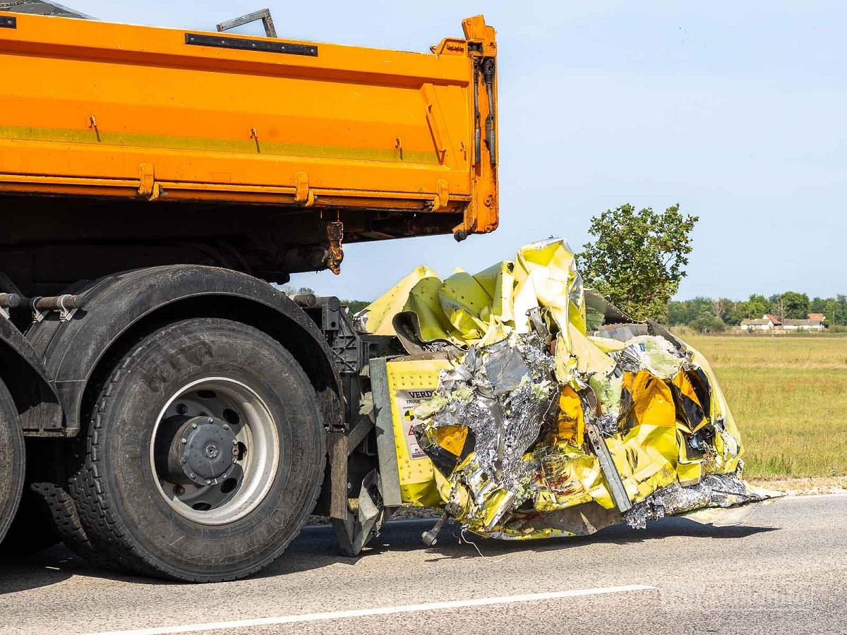 Șofer român de TIR, scăpat miraculos cu viață dintr-un accident violent. Cabina a fost distrusă complet pe o autostradă din Ungaria