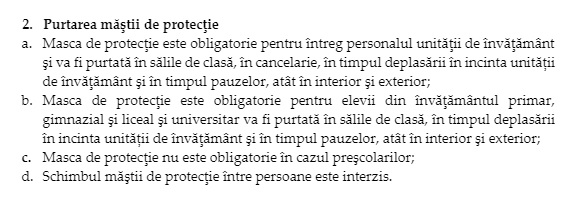 Extras din ordinul comun de ministru, semnat de Sorin Cîmpeanu și Vlad Voiculescu înainte de redeschiderea școlilor din 8 februarie