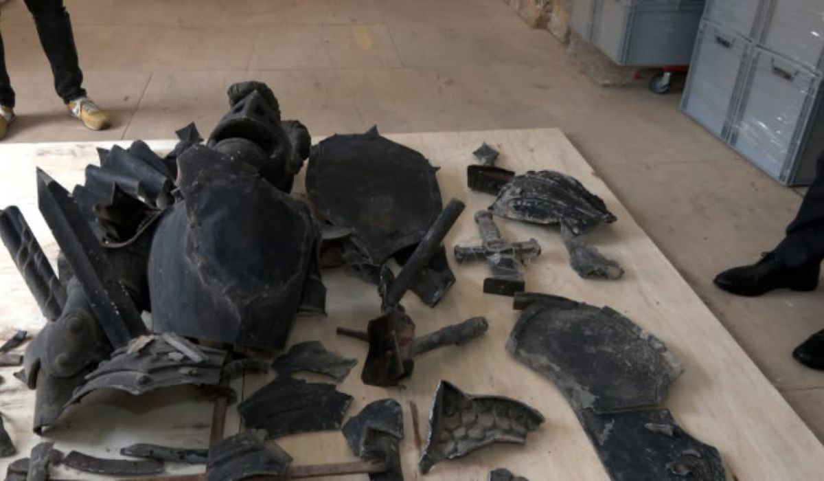 Statuia a căzut de la 4-5 metri înălțime și s-a spart în zeci de bucăți. Foto: Europe Press RO