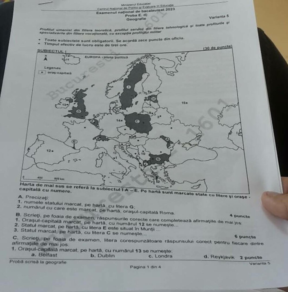 Subiecte geografie BAC 2023. Ce au avut de rezolvat elevii care au ales să dea Bacul la această materie