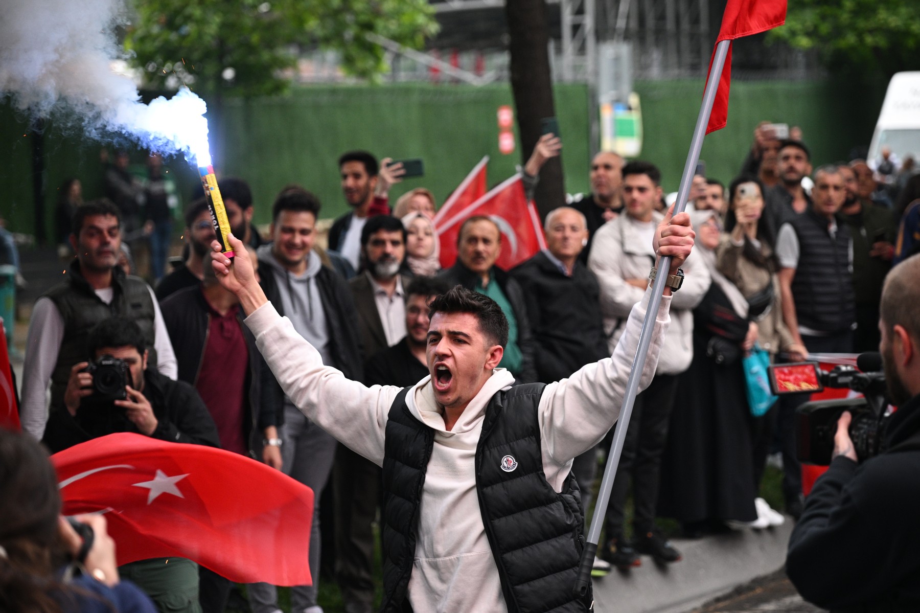 Susținătorii lui Erdogan au ieșit să sărbătorească în stradă înainte ca acesta să-și revendice victoria, siguri de avansul liderului turc