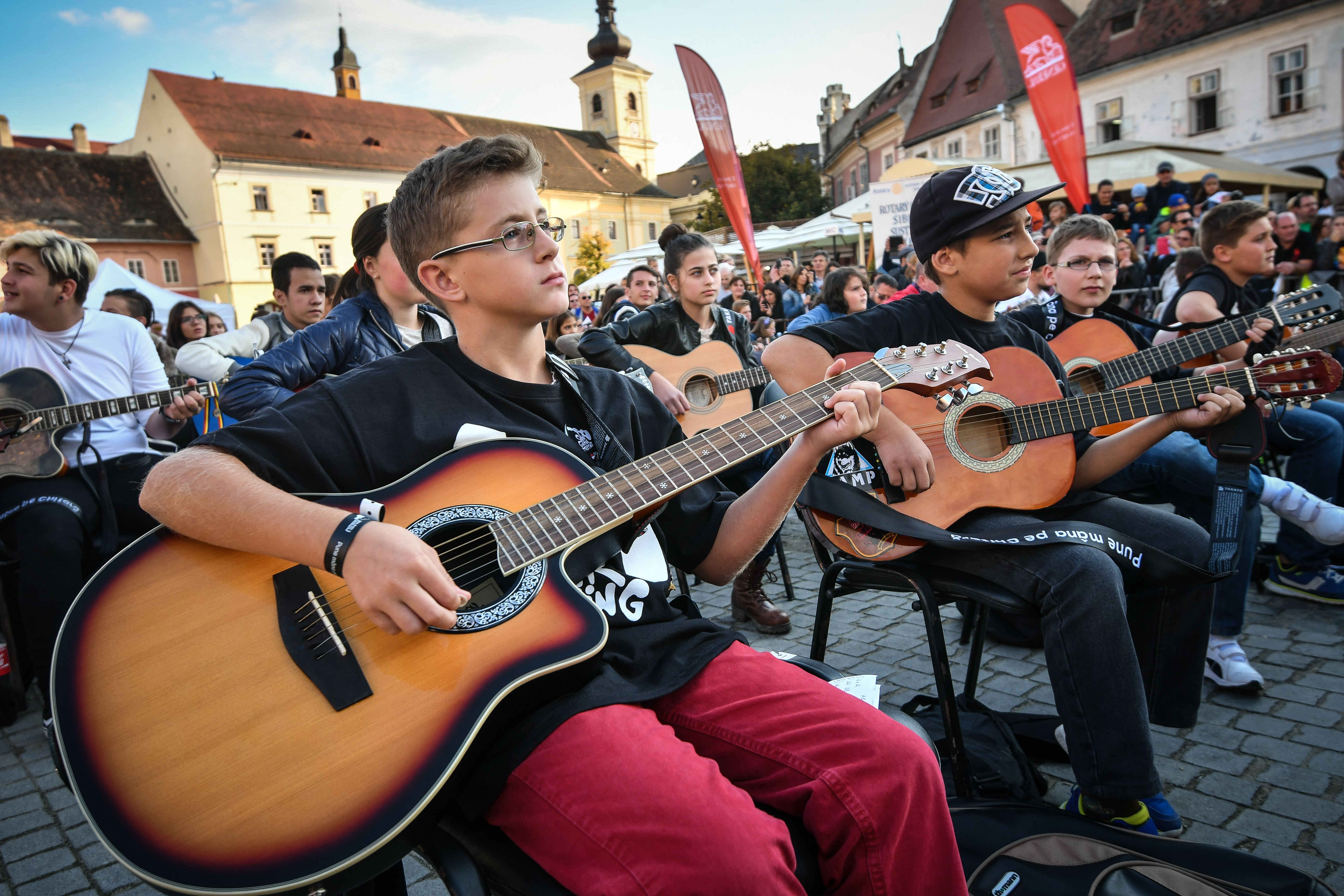 Sute de tineri şi-au acordat chitarele şi au cântat la unison la Sibiu FOTO&VIDEO
