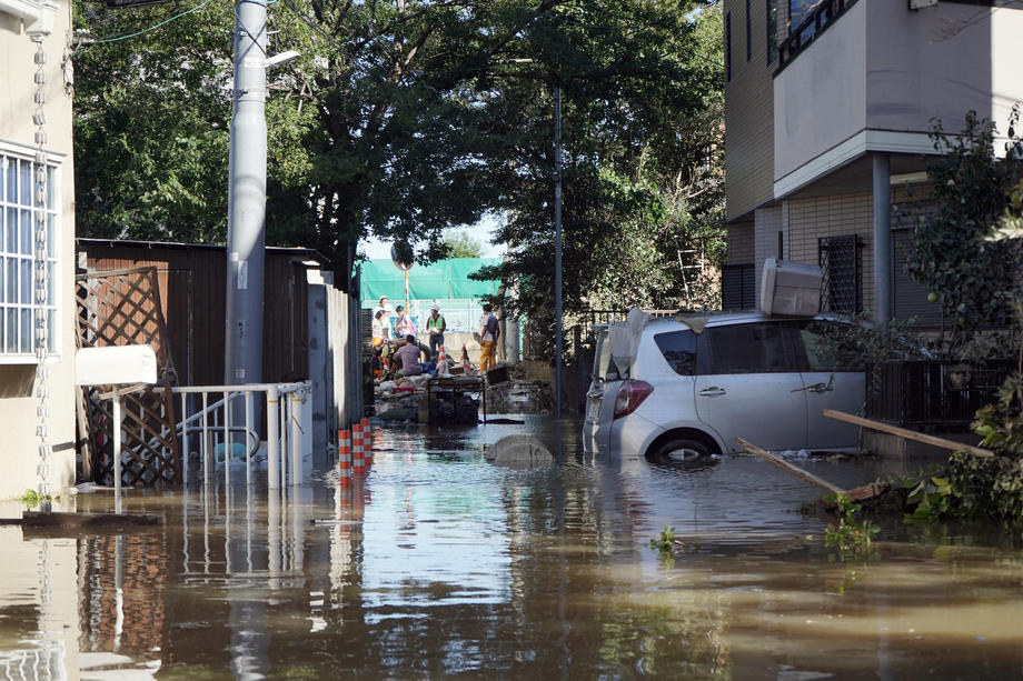 Străzi inundate la Kawasaki, lângă Tokyo