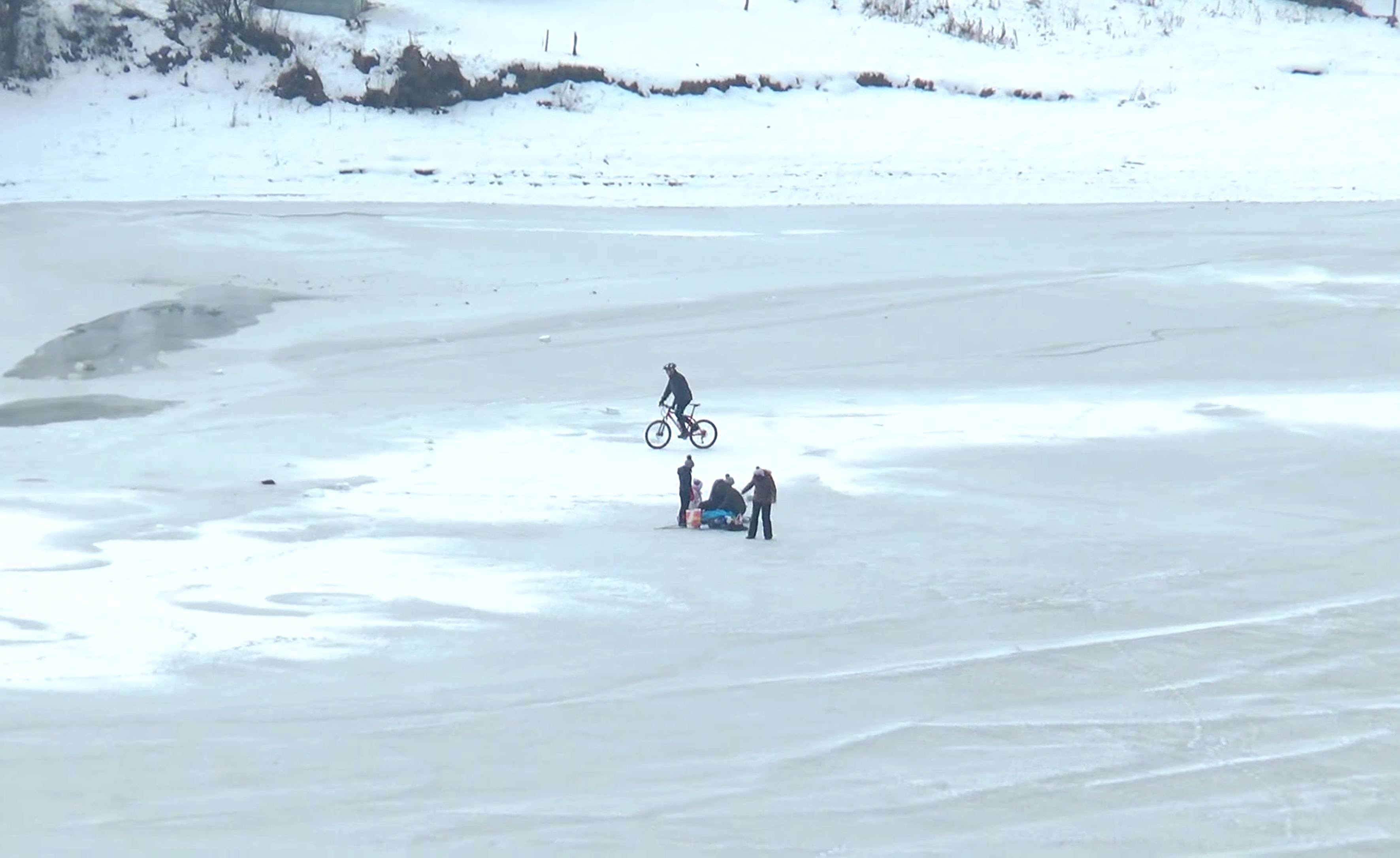 Tinerii patinează pe Lacul Cinciș din Hunedoara care a înghețat. Gheața se poate sparge oricând