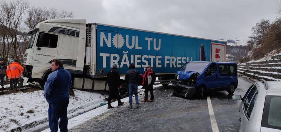 Un TIR a blocat traficul auto și feroviar între Huedin și Oradea, după un grav accident rutier