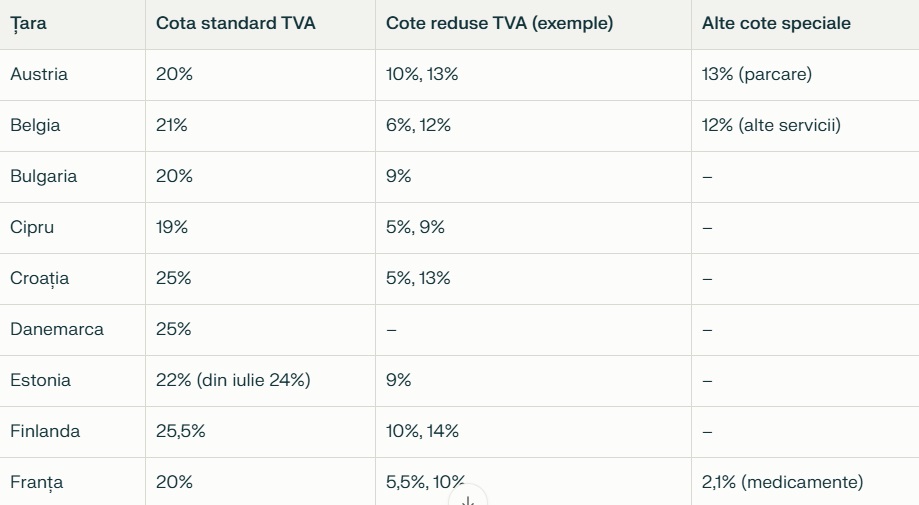 Ce TVA au celelalte țări europene și cum se poziționează România în topul cotelor