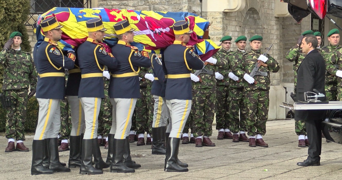 Regele Mihai la Sinaia. Sicriul cu trupul neînsuflețit în fața Castelului Peleș
