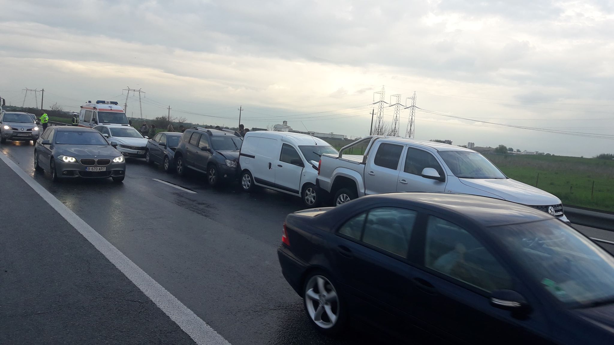 Un accident în care au fost implicate nouă mașini a avut loc pe autostrada București – Pitești. Un copil de trei ani a fost rănit