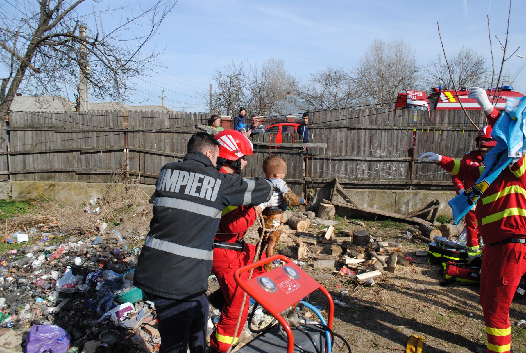 Un băiețel de nici doi ani a căzut într-o fostă septică în Călărași. Pompierii l-au salvat cu ajutorul unui alt copil / FOTO&VIDEO