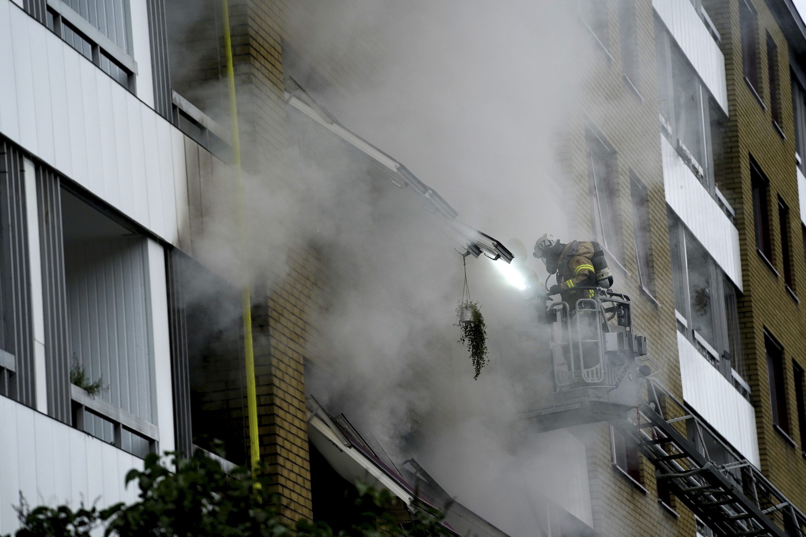 epa09492319 Aftermath of an explosion at an apartment building in Annedal district, Gothenburg, Sweden, 28 September 2021. The explosion occurred at 05:00 am local time. Around 20 people were taken to hospital. EPA-EFE/BJORN LARSSON ROSVALL/TT SWEDEN OUT
