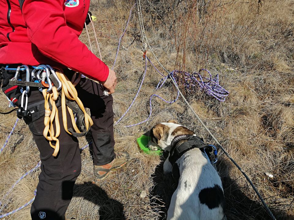 Un câine căzut într-o prăpastie, speriat de petardele de la Revelion, a fost salvat după o săptămână
