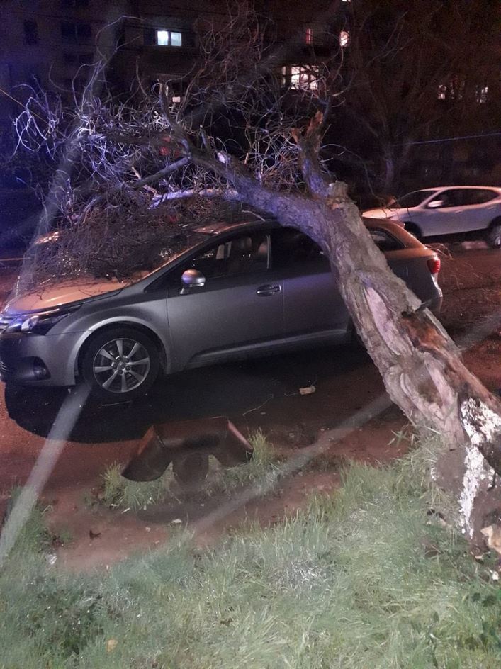 Copac doborât de vânt peste o mașină în care se afla un copil de 3 ani, într-o parcare din Constanța