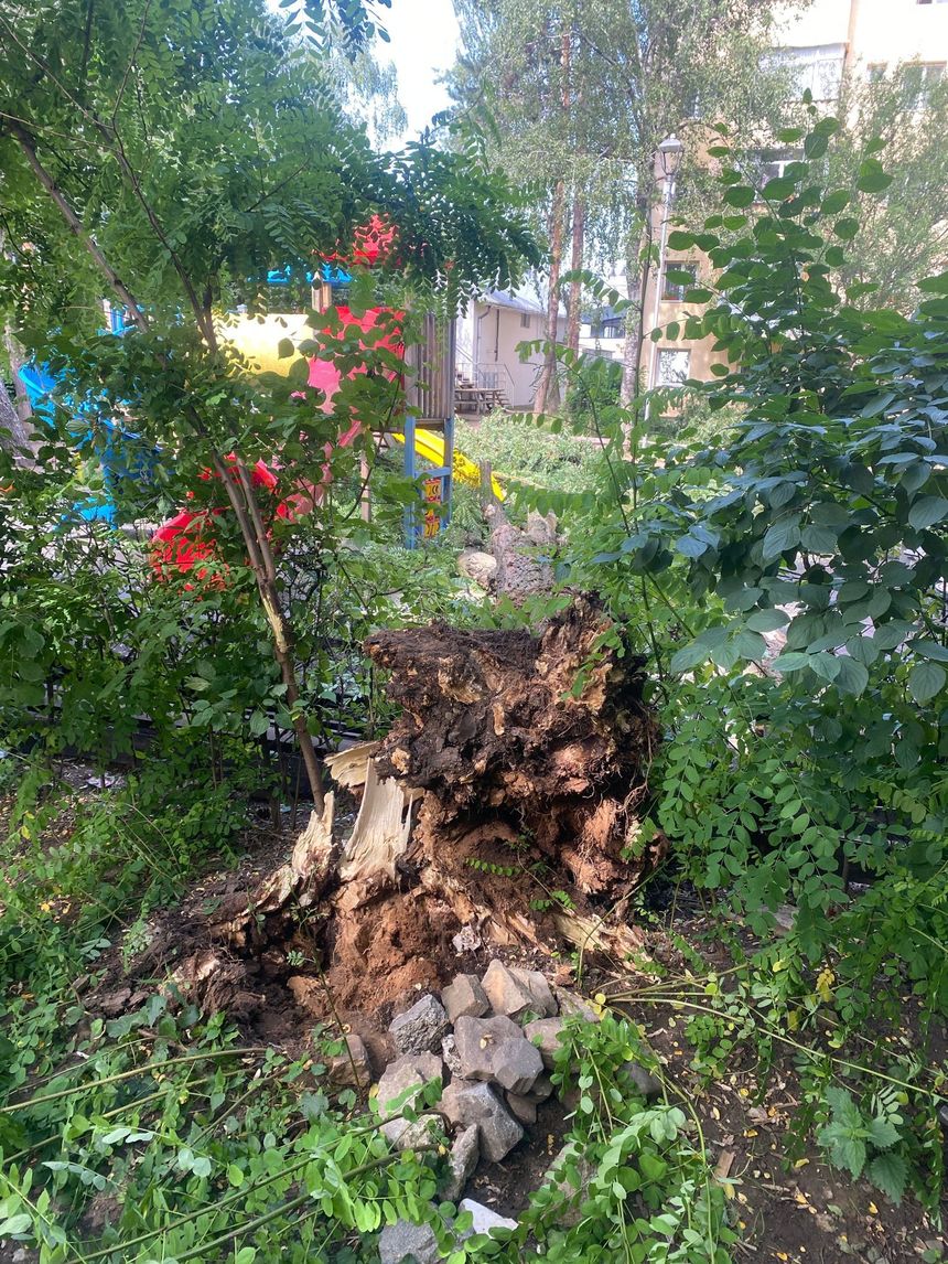 Copacul căzut la locul de joacă în Suceava. Foto: News.ro