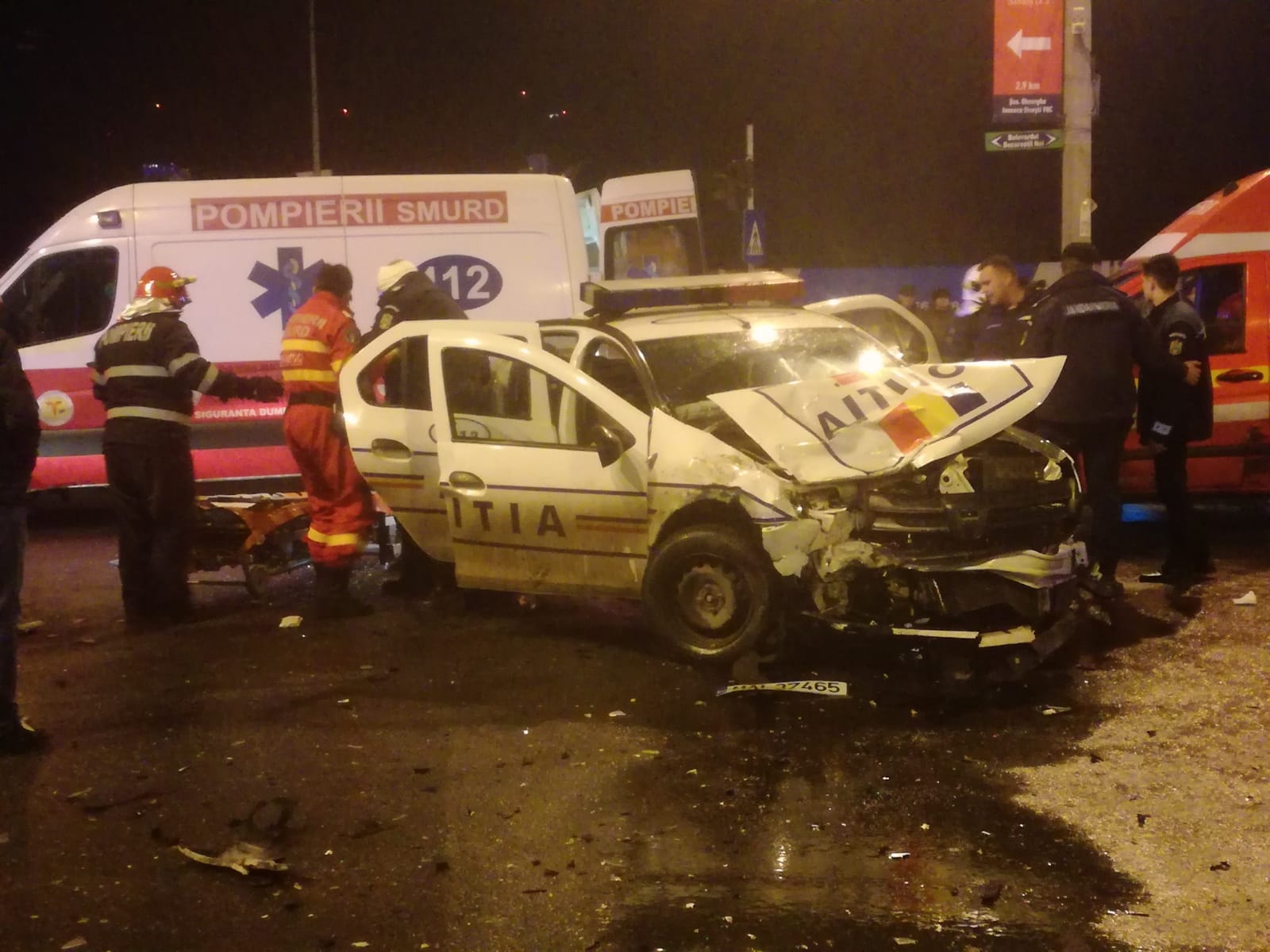 FOTO. Un jandarm și trei polițiști, răniți într-un accident produs în Capitală. Cei patru erau în misiune
