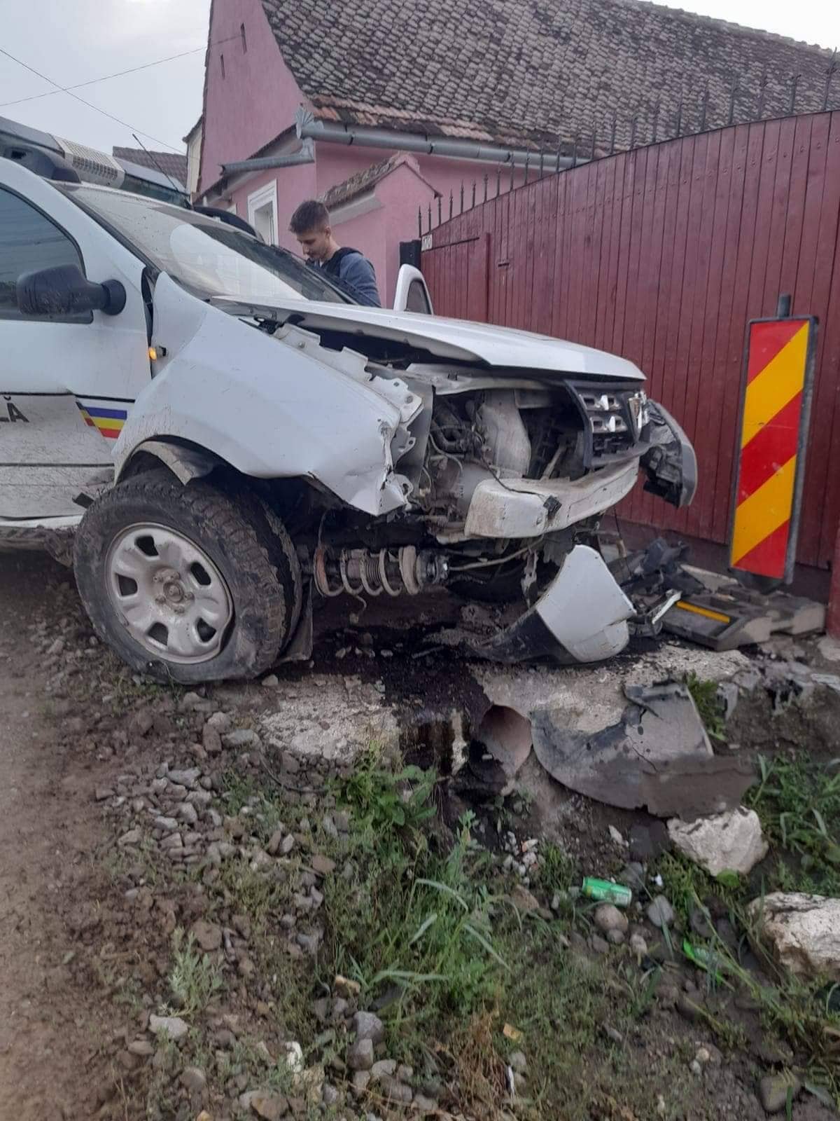 Un adolescent fără permis a furat maşina Poliţiei Locale şi a făcut accident, într-o comună din Braşov