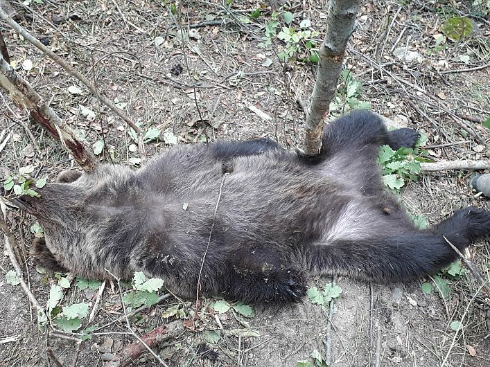 Un urs a fost prins în laț într-o pădure din Vrancea. A fost eliberat după ce i-a fost amputată o labă