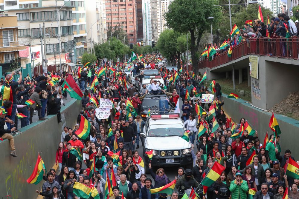 Sute de oameni au ieșit în stradă în capitala Boliviei după ce Evo Morales a anunțat că renunță la putere foto: EPA