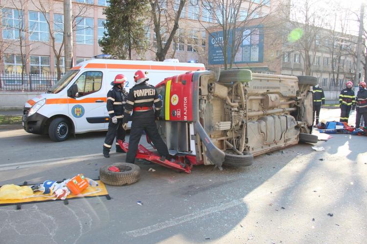 VIDEO | O autospecială SMURD s-a răsturnat în centrul Brăilei, după ce a fost lovită de un autoturism. Două persoane au ajuns la spital